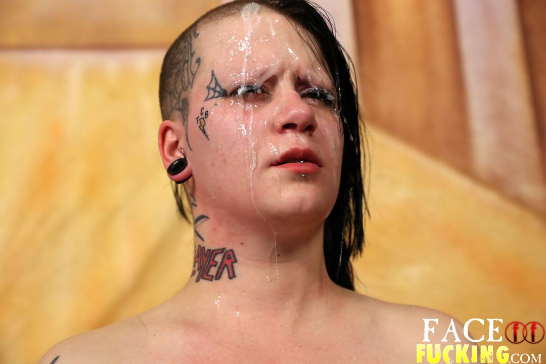 Tattooed freak Tank thinks she has what it takes for FacialAbuse. Bootleg and Pauly Harker proved this whore wrong. The stuffed her holes full of cock while they made sure to slap her around. When they were done with this skank they shot loads on her face as the tears streamed down her cheeks.